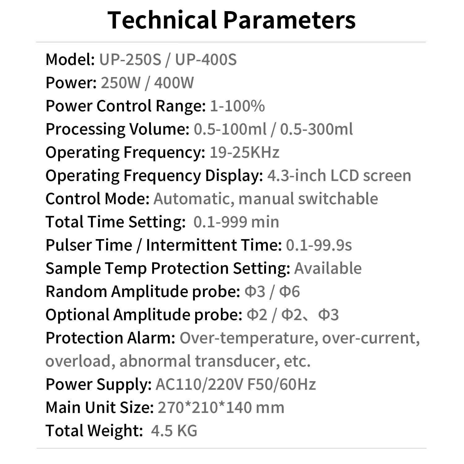UP-250S / UP-400S Hand-held ultrasonic processors is a multifunctional and versatile instrument that uses strong ultrasound to produce cavitation effects in liquids for ultrasonic processing of substances, greatly improving the stability and reliability of the instrument.