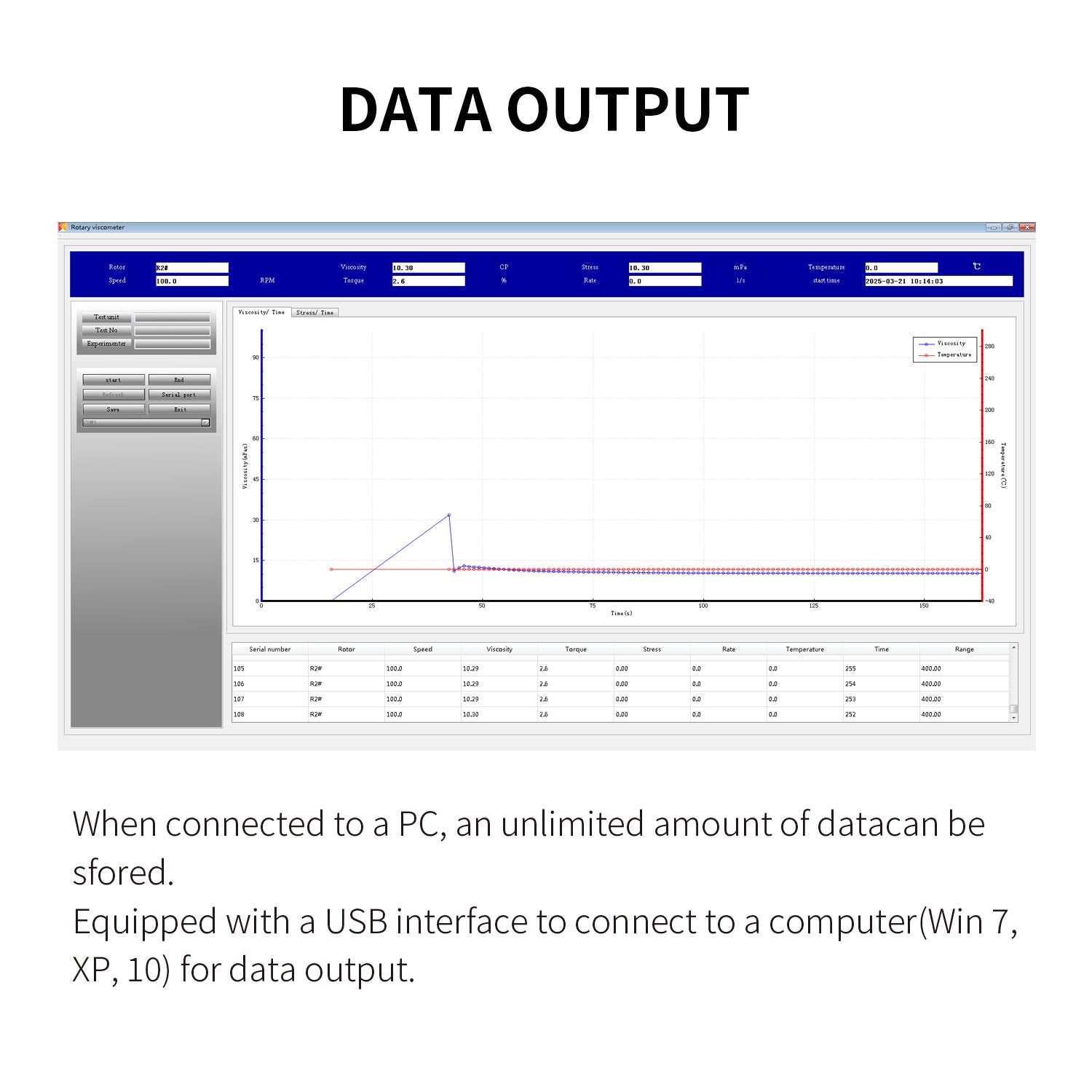 Viscosity-Temperature Curve: | Viscosity-temperature time curve can be output |