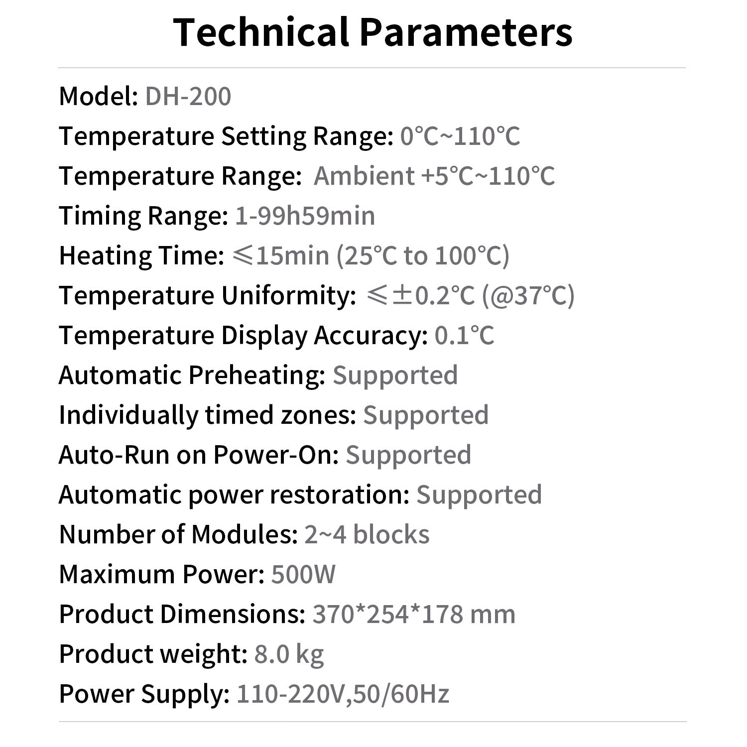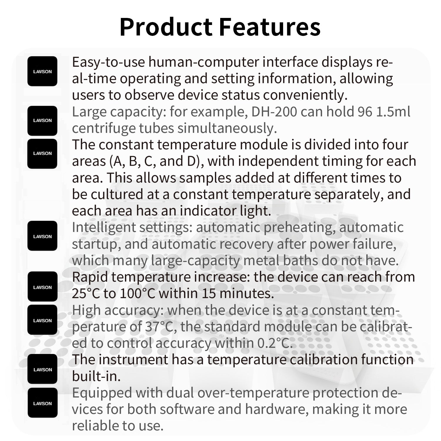 - Large capacity: for example, DH-200 can hold 96 1.5ml centrifuge tubes simultaneously.