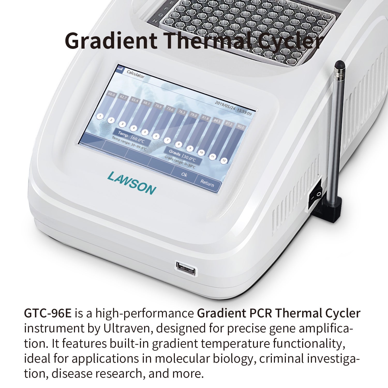 - GTC‑96E is a high-performance PCR Gradient Thermal Cycler instrument by Ultraven, designed for precise gene amplification.