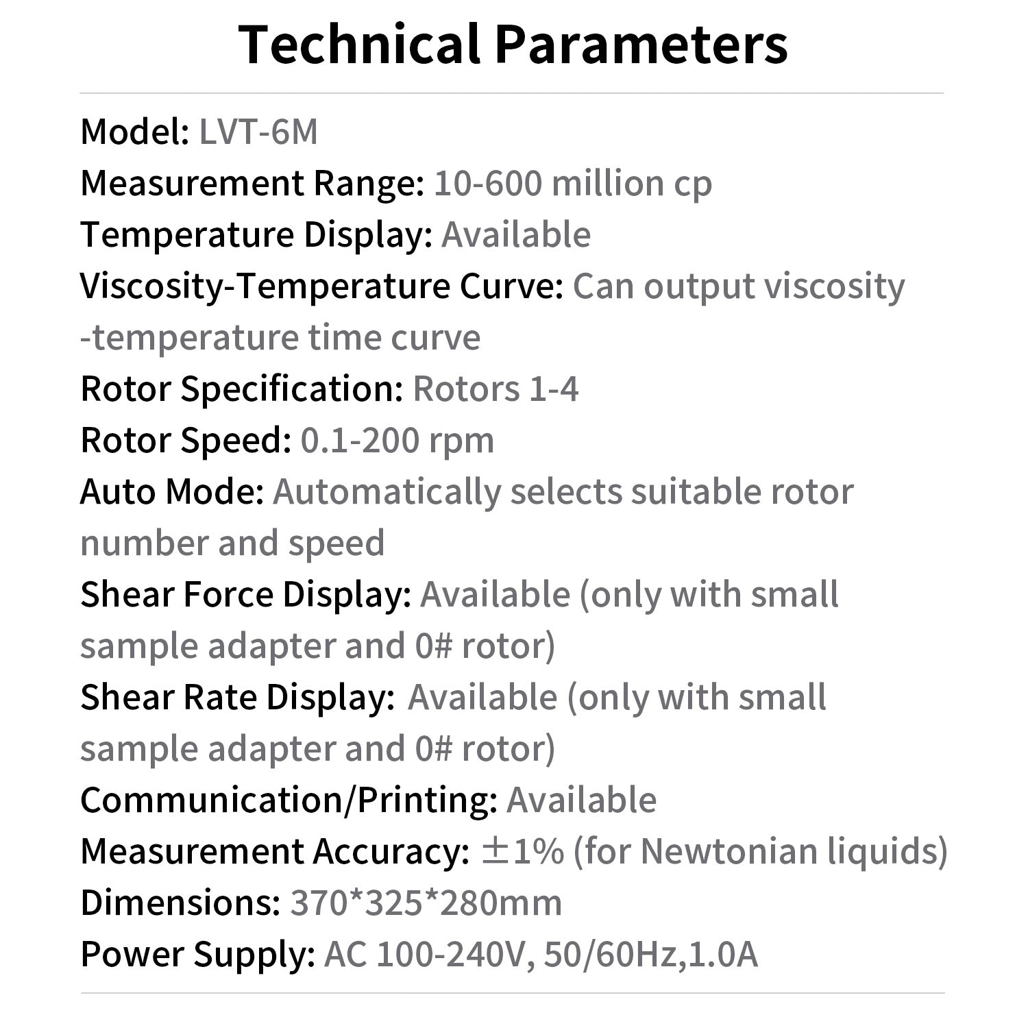 Measurement Range | 10-6,000,000 mPa.s/10-40,000,000 mPa.s/10-320,000,000 mPa.s |