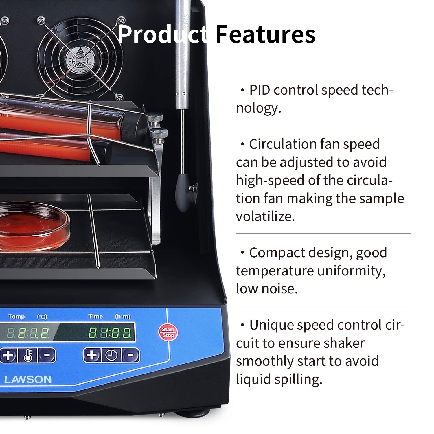 - Micro-processor controls temperature and shaking speed. Built-in timing function.