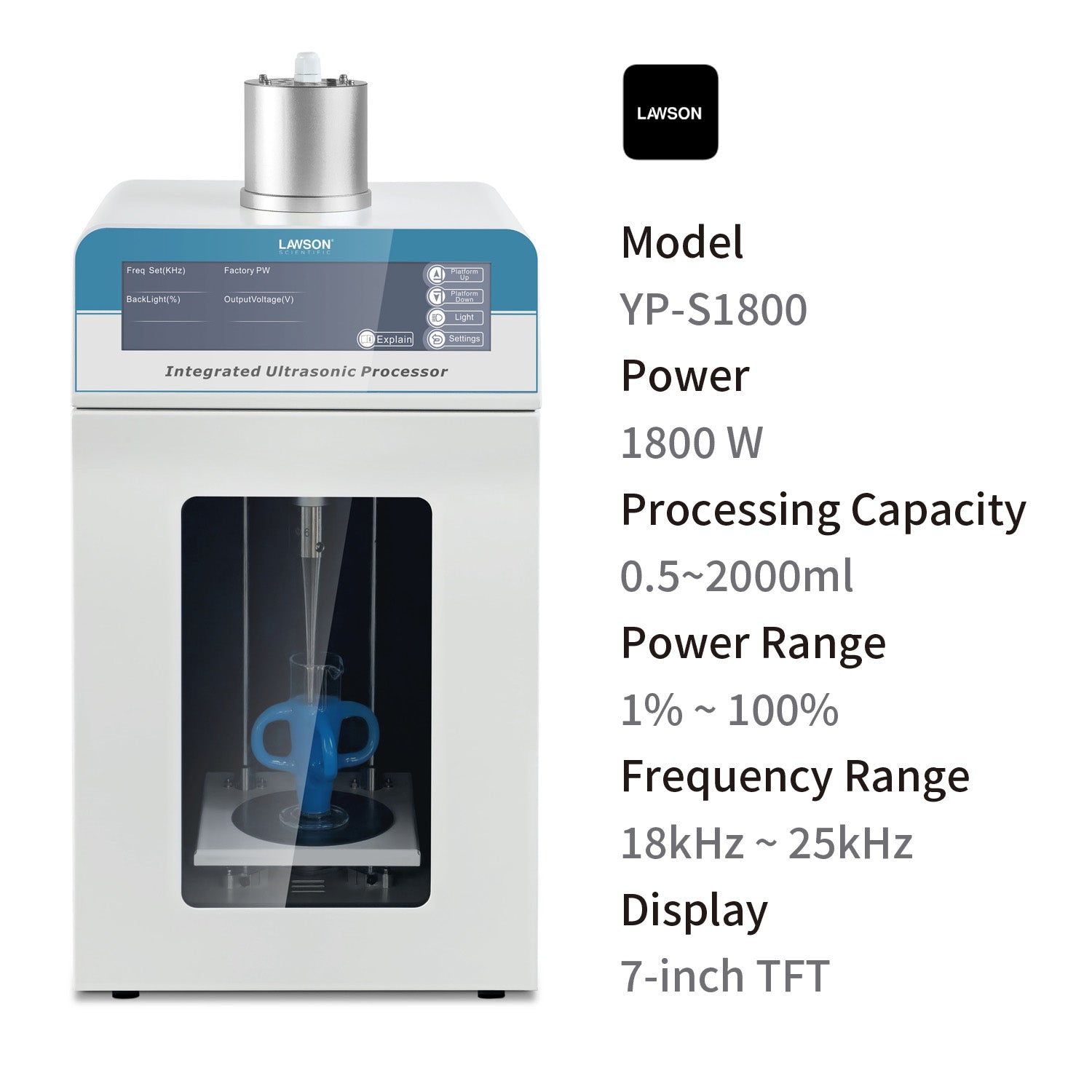 - 18~1800W ultrasonic homogenizer can safely process various organic and inorganic materials, from 250 microliters to 2000 milliliters.